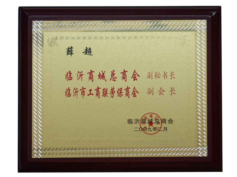 董事長薛超榮獲臨沂商城總商會副秘書長