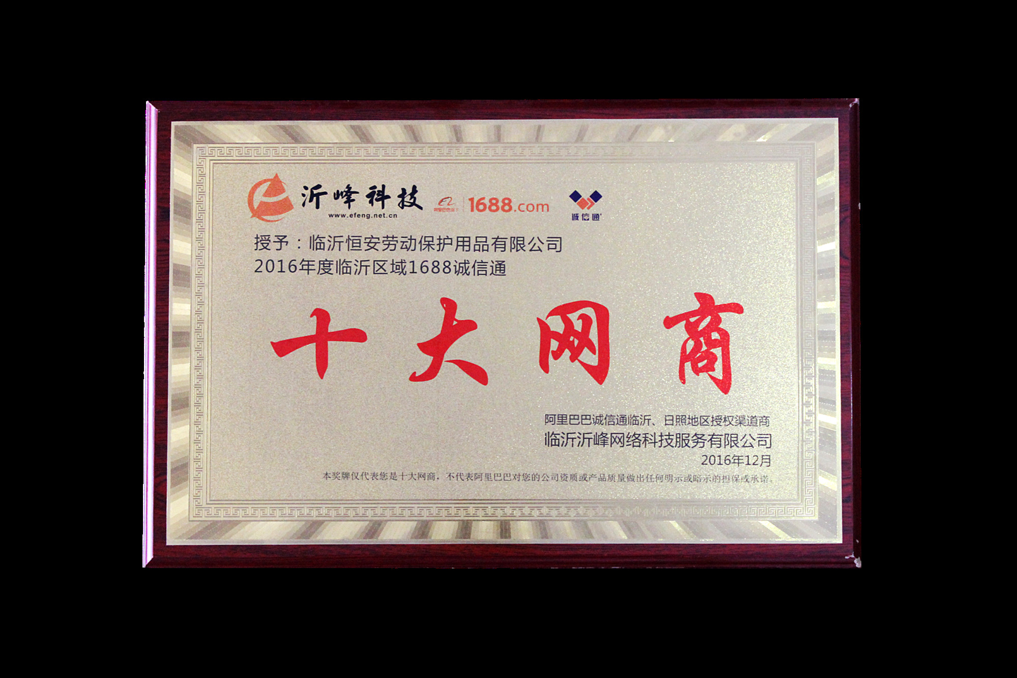 恒安勞保榮獲臨沂區(qū)十大網(wǎng)商