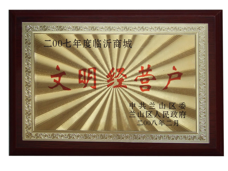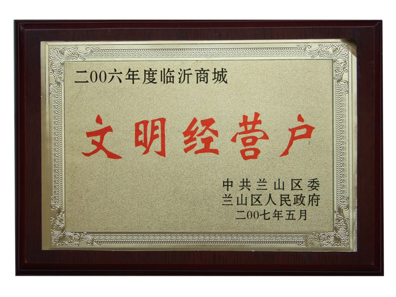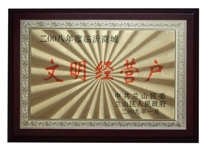 恒安勞保榮獲臨沂商城文明經(jīng)營戶